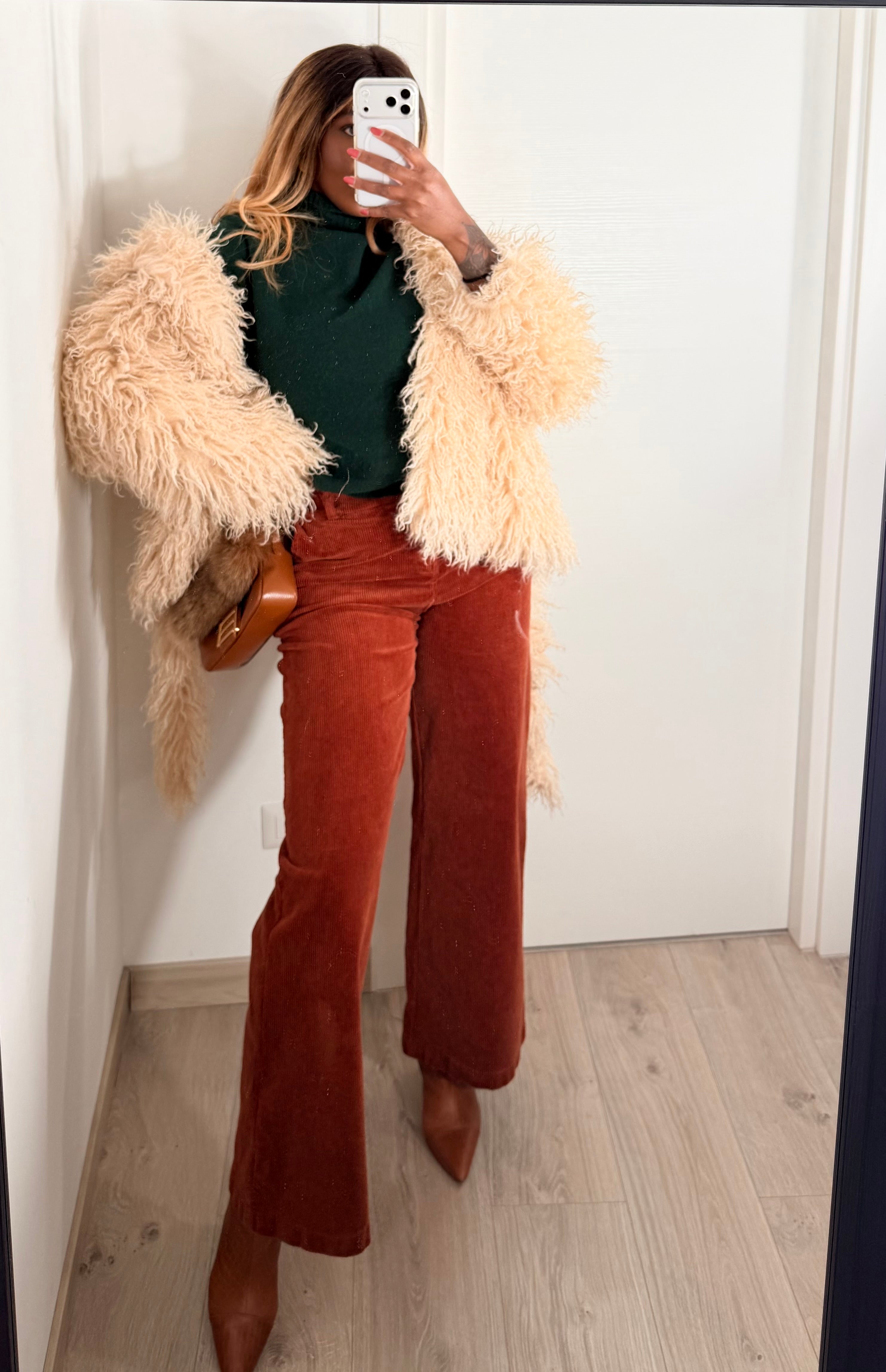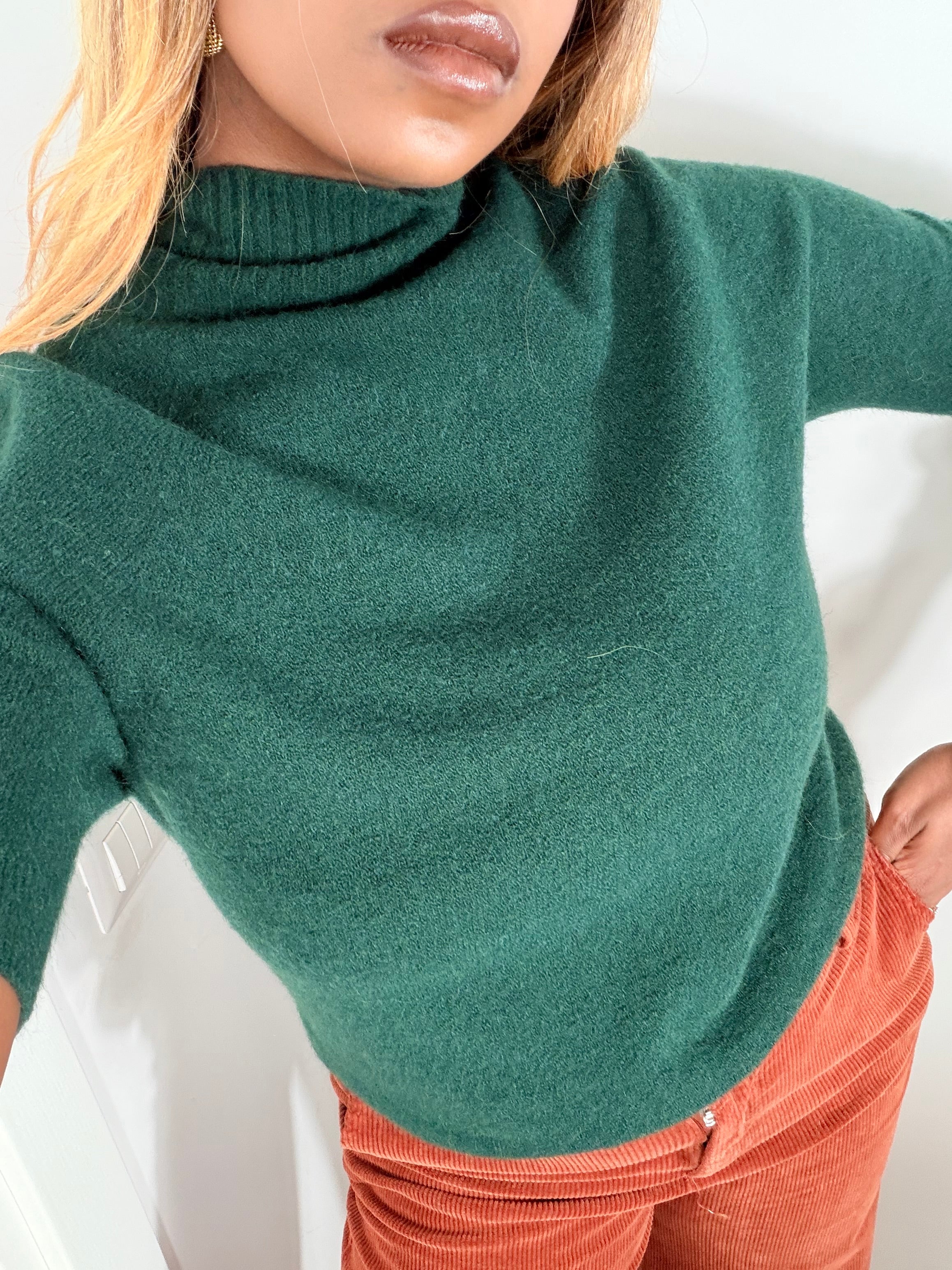 Maglia collo lupetto manica a tre quarti con taglio over. Perfetta sia da sola che come sotto giacca da sfruttare anche sulle fantasie più alla moda.