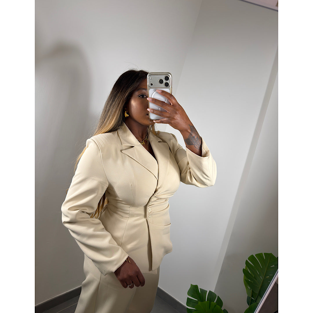Completo coordinato composto da giacca strutturata e pantalone , pensato per garantire vestibilità definita e comfort.