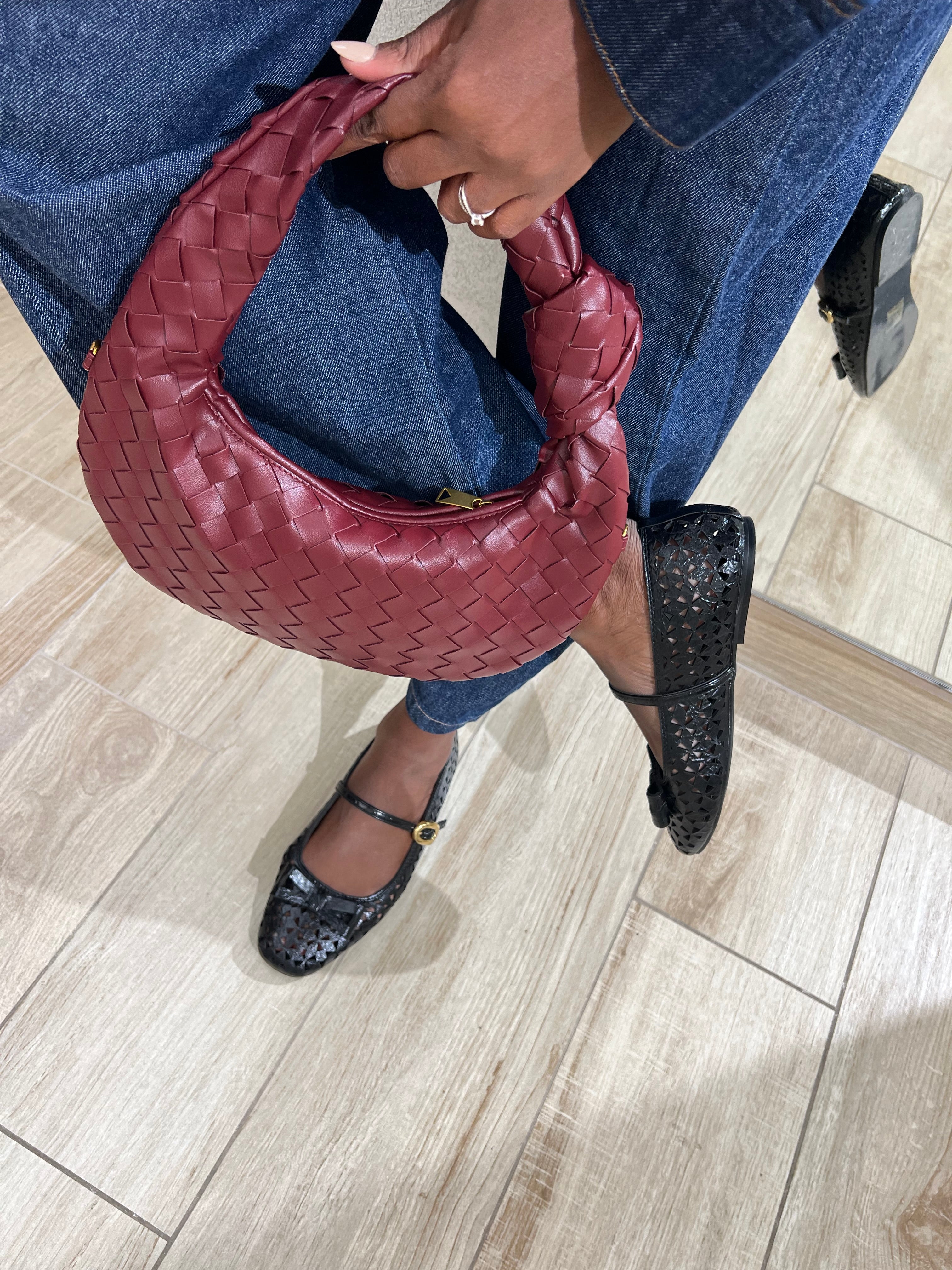 Borsa intrecciata forma ovale in ecopelle con manico comodo da portare a mano o sotto braccio , chiusura con zip ed interno foderato. Sul manico presenta nodo che rende questo modello un must!