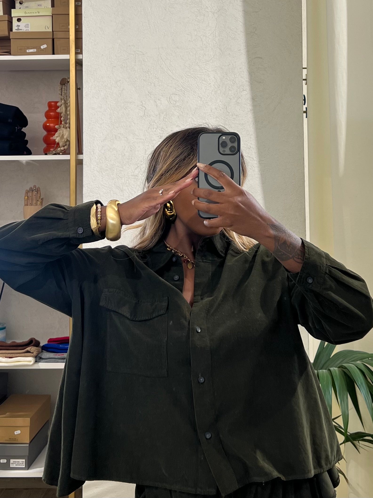 Camicia in velluto in cotone 100% con colletto , tasca applicata sul davanti , chiusura con bottoni e vestibilita’ comoda .